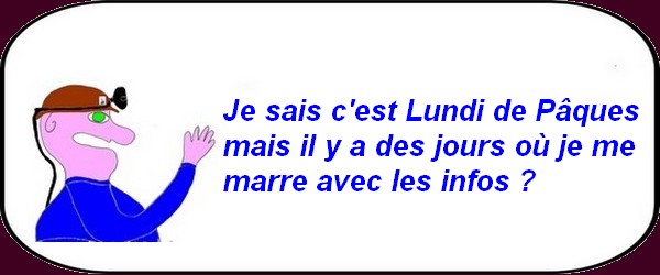 Ben quoi il n'y a pas que de la politique dans mon blog. Rappelez vous que tout est dit avec l'humour des "Tiot". D'ailleurs ce matin le Tiot mineur a décidé de ne plus respecter les horaires de diffusion . On termine par quelques petites histoires .......
