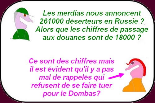 Ce matin le Minet s'est levé du bon pied car il demande que des négociations s'engagent entre la Russie et l'Ukraine ? Il ne veut peut-être pas récupérer les russes déserteurs ? Pourtant à l'Onu il parlait de guerre? Avec ses acolytes il y aurait une...