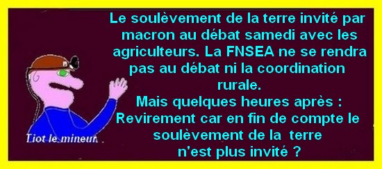 Avec le " en même temps " tout ne fonctionne pas . La question du jour : Comment peut-on diriger un pays en étant contre le peuple ? Je ne connais pas la réponse mais peut-être que les moutons qui ont voté pour Macron peuvent me l'expliquer! Les AGRICULTEURS...