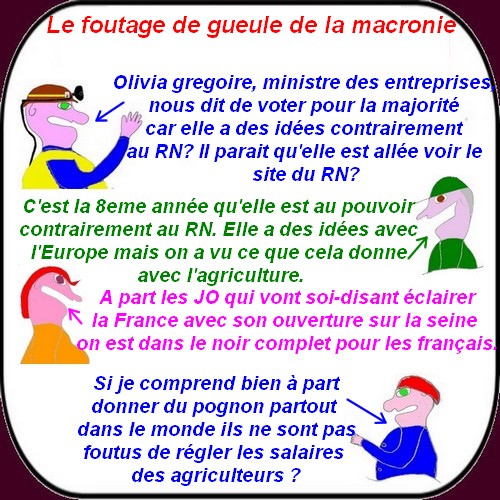Il y a de quoi rire dans ce pays qui tombe en lambeaux. Ce matin je suis allé chez le coiffeur et croyez moi je me suis marré avec une macronaute ? Je vous raconterais plus tard le temps de faire les dessins.... Sinon en écoutant les infos on en apprend...
