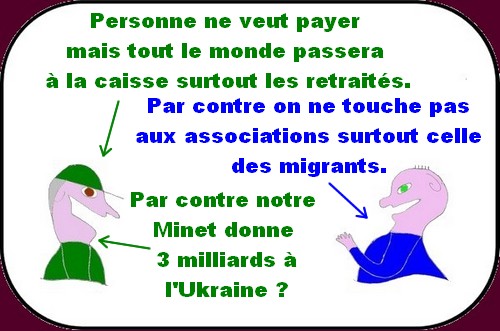 C'est à ne rien y comprendre? Je me demande où on va mais on y va ....???? Notre MINET serait-il vexé ... AIDER OUI mais personne pour s'occuper de nos retraités.... Un peu d'humour pour terminer ce petit billet..... Je vous souhaite une bonne journée...