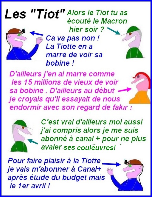 Préambule..... D'abord ce qui arrive à la Tiotte.... On y va pour les histoires drôles.... Ce matin je me suis marré avec les écolos qui sont VERTS, et certainement MURS pour l'asile... Ce matin TIOT a reçu un message de Russie