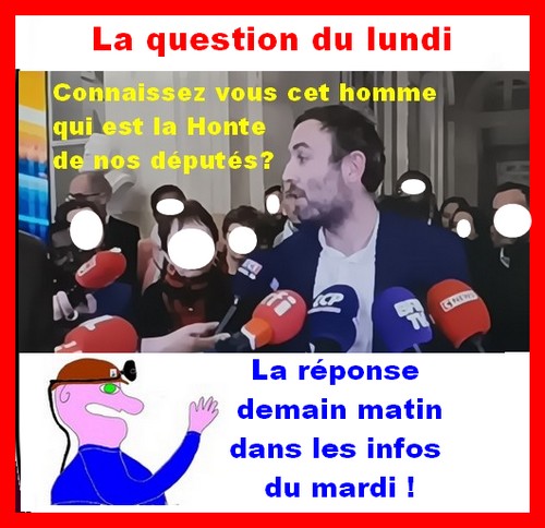 On ne fait pas comme d'habitude car aujourd'hui on commence par une question.... Un petit mot de TIOT pour commencer..... Il est évident qu'avec ce genre de député LFI (ci-dessous) qui harangue la foule lors de la dernière manifestation pour interdire...